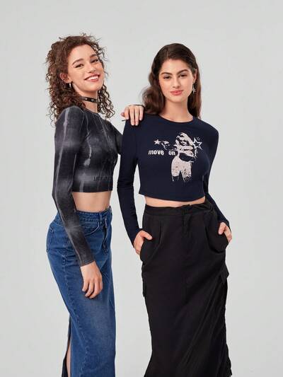 Crop Top With Round Neck And Long Sleeve Fall Cloth For Women-61%