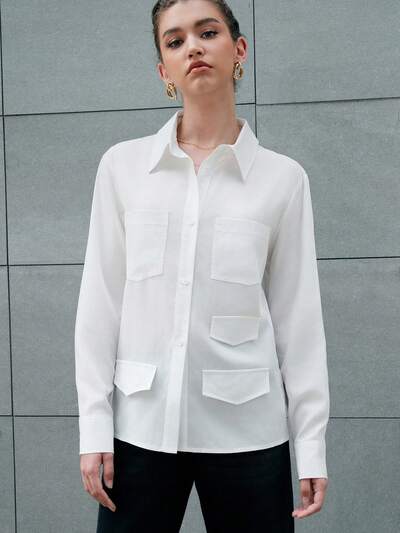 Solid Color Patchwork Shirt With Pocket Fall Cloth For Women-32%
