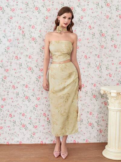 Summer Women's Strapless Long Dress 2pcs/Set-26%