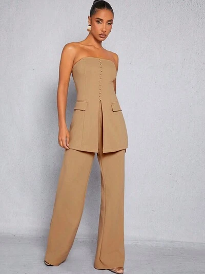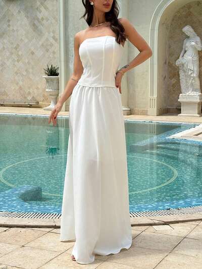 Elegant Strapless Boned Bodice Top & Umbrella Skirt Set For Women