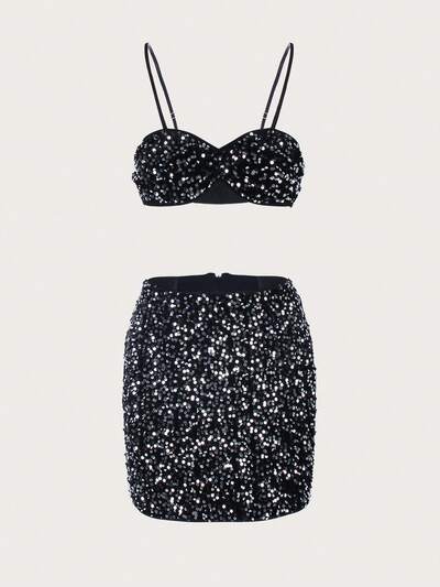 Two Pieces Sequined Super Short Cami Top And Skirt Set-26%