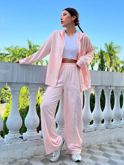 Zip Up Drop Shoulder Hoodie & Sweatpants-27%