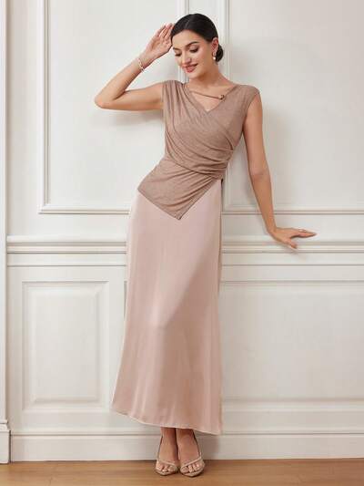 Women's Elegant Solid Color Draped Neck Ruffle Crop Top And Mermaid Skirt Two Pieces Set, Summer-20%