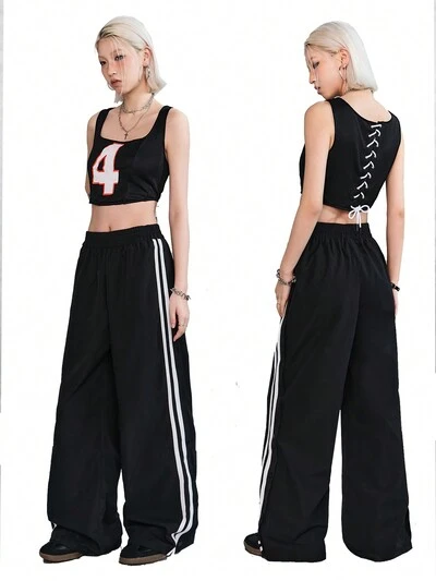 Mesh Digital Patchwork Structure Vest & Side Stripe Pants-27%