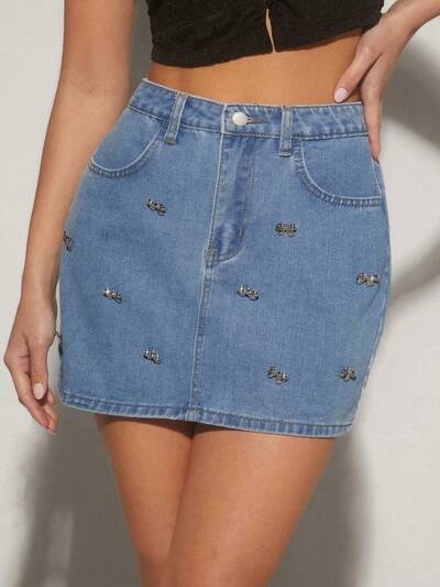 Women's Rhinestone Decor Denim Shorts-25%