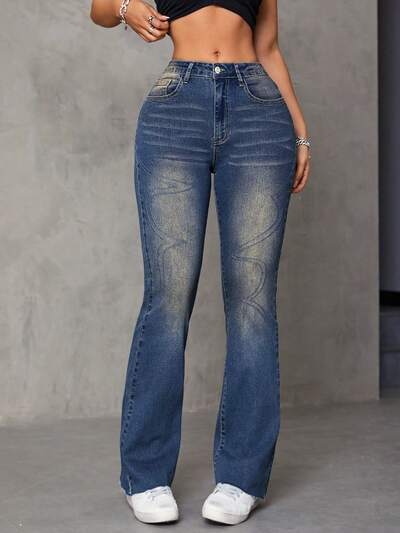 Embroidered Vintage Washed Flare Jeans