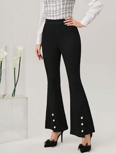 Pearls Detail Flare Leg Jeans-25%