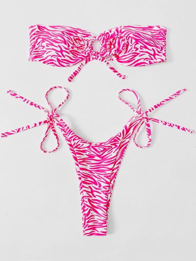 Summer Beach Zebra Stripe Bikini Set Cut-Out Bandeau Bra & Thong Bottom 2 Piece Bathing Suit-34%