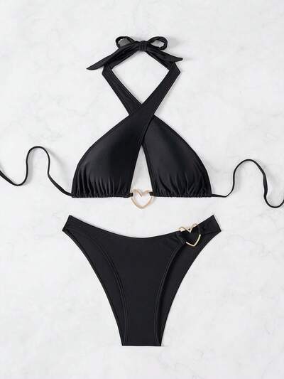 Women Vacation Bikini Set With Heart-Shaped Circle Linking And Halter Neckline Summer-32%