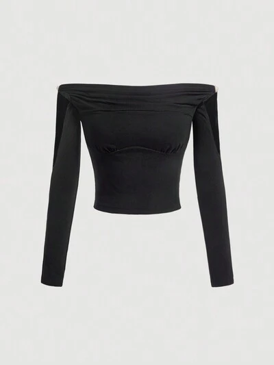 Solid Button Front Crop Shirt Fall Cloth For Women