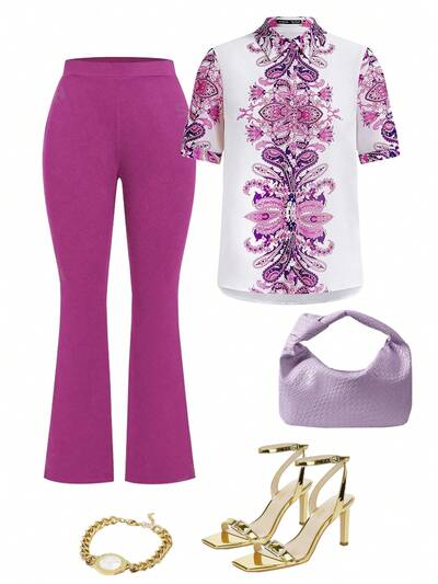 Women's Fashionable Notched V-Neck Printed Casual Button-Up Shirt-32%