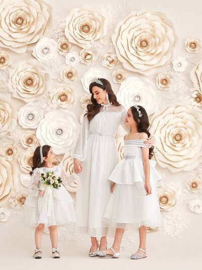 Patchwork Lace & Pearl & Stud Decor Lantern Sleeve Waist Belted Dress Long Evening Dresses-22%