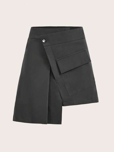 Flap Pocket Asymmetrical Hem Skirt-65%