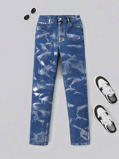 Young Girl Washed Casual Fashionable Denim Dress With Cute And Lively Ruffle Decoration