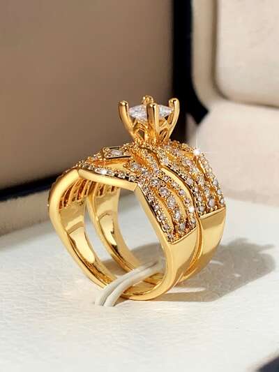2pcs/Set Gorgeous Cubic Zirconia Ring Set For Women For Wedding Jewelry Valentine's Gift