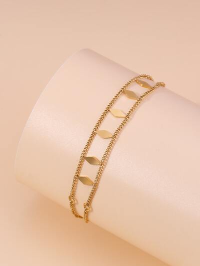1pc Stainless Steel Fashionable High-End Jewelry Double-Layer Rhombus Pendant Necklace & Bracelet Set, Women-9%