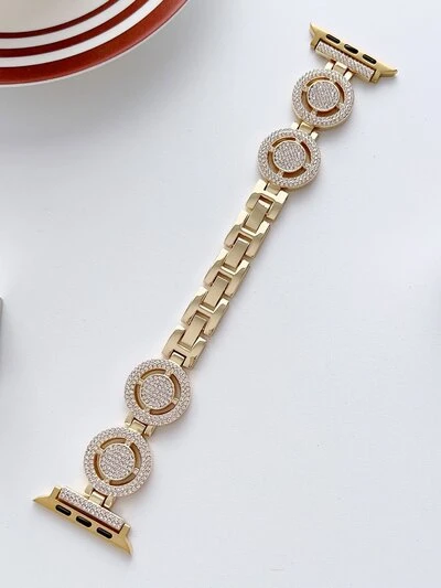 Apple Rhinestone Microphone Watch Band Compatible With Apple Watch 38/40/41/42/44/45/46/49mm, Suitable For Apple Watch Ultra/SE/Series 10/9/8/7/6/5/4/3/2/15pcs/set Round & Knot Decor Cuff Bangle