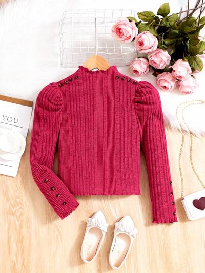 Girls' High-neck Puff Sleeve T-shirt With Unique Design For Spring-65%