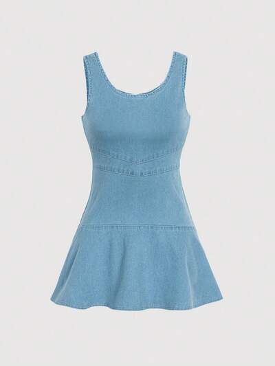 Tween Girl Fashionable Casual Sleeveless Denim Dress-45%