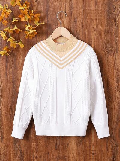 Young Girl Heart Pattern Colorblock Sweater