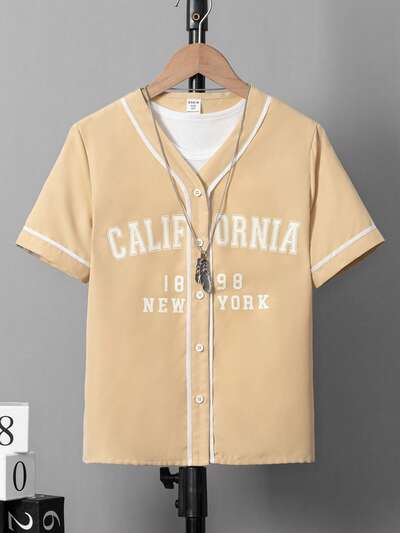 Tween Girls' Loose Fit Casual Letter Print Short Sleeve Shirt-46%