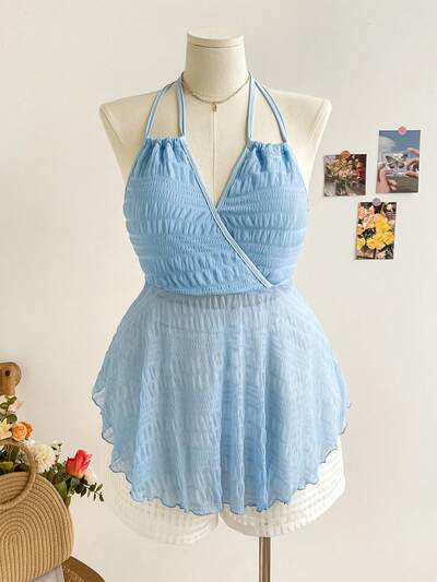 Plus Size Women's Holiday Halter V-Neck Backless A-Line Top