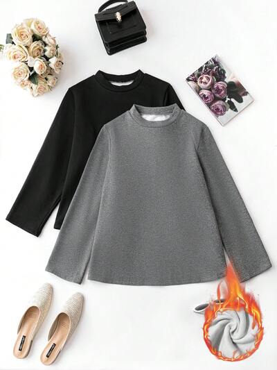 Plus Size Half High Collar Solid Color Long Sleeve T-shirt-65%