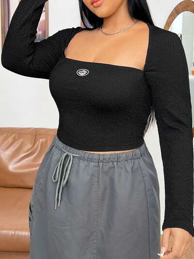Plus Letter Patched Detail Square Neck Tee-30%