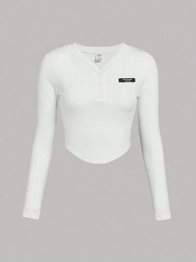 Plus Letter Patched Detail Half Button Tee-30%