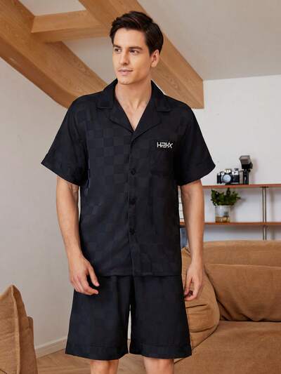 Men's Color-Block Edges Print Single-Breasted Casual Short-Sleeve Top And Shorts Homewear Set, Summer-19%