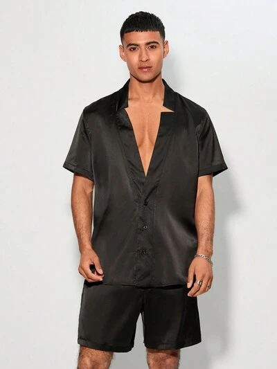 Men Summer Casual Solid Color Short Sleeve Shirt And Shorts Set