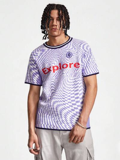 Men Summer Casual Knitted Short Sleeve Tee With Letter Embellished Raglan Sleeve Detail-30%