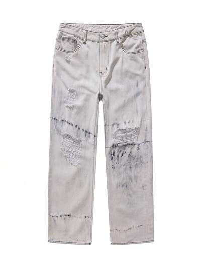 Men's Tie-Dye Straight Leg Distressed Loose Fit Jeans, Casual-50%