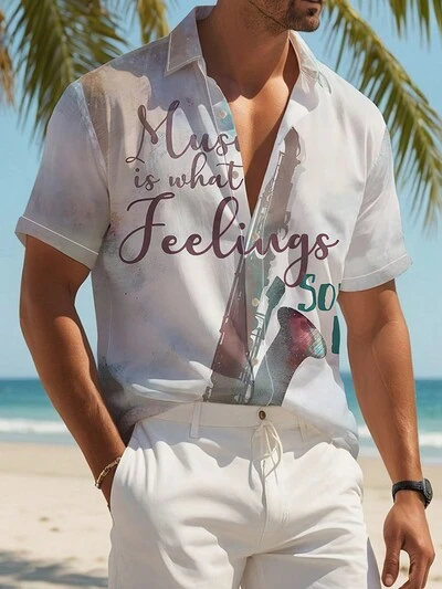 Men Summer Short-Sleeved Casual Shirt With Letter Printed Pattern-25%