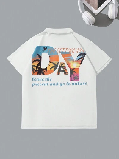Men Vacation Beach Shorts With Floral And Letter Print-60%