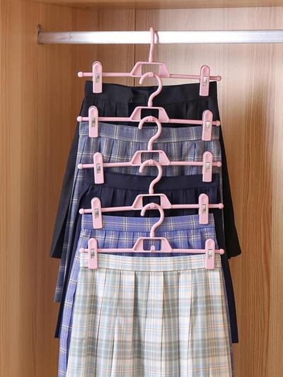 5pcs Plastic Rotating Pants Hangers With Non-Slip Clips, Pink