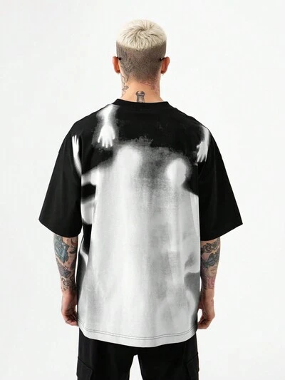 Men's Star & Letter Printed Round Neck T-Shirt-65%
