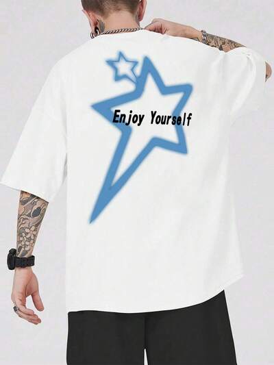 Men Plus Slogan & Star Print Drop Shoulder Tee-18%