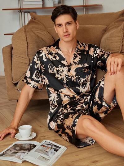 Men Casual Summer Printed Loose Fit Home Clothes Set