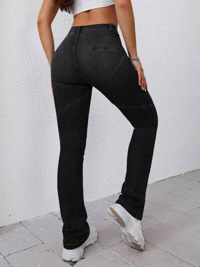 Single Button Fly Foldover Waist Denim Long Pants-25%