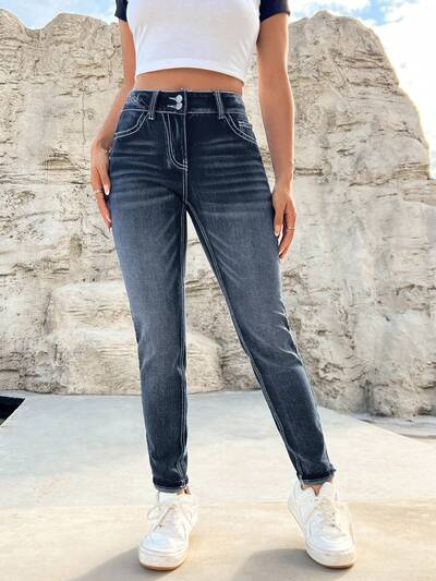 Women'S Button-Down Denim Top With Flap Pockets And Frayed Edge