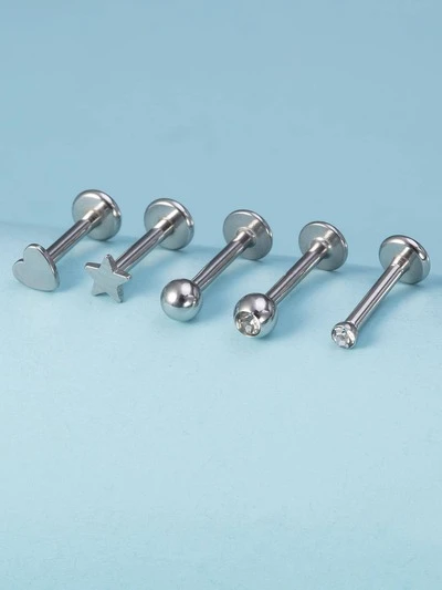 5pcs/Set Minimalist Heart & Star Design Lip Ring For Women For Daily Jewelry Accessories Valentines-8%