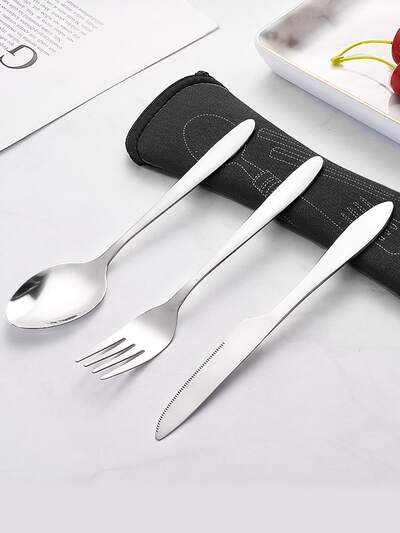 3pcs Stainless Steel Tableware Set With Pointed Handle, Including Knife, Fork, Spoon, Suitable For Adults And Students, Easy To Carry For Outdoor Travel, With Cloth Bag,Kitchen,Christmas Gift,School Supplies-13%