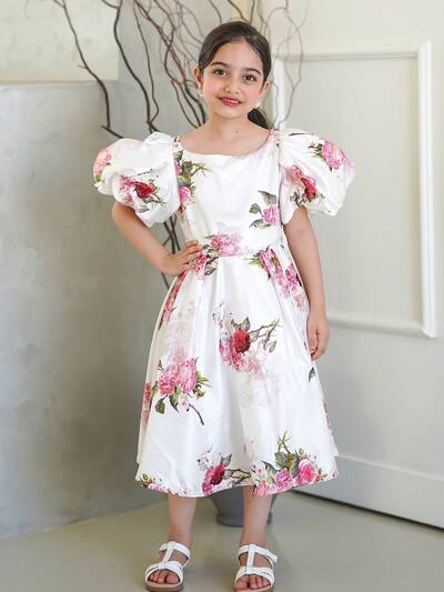 Tween Girl Puff Sleeve Gorgeous Princess Dress Suitable For Parties