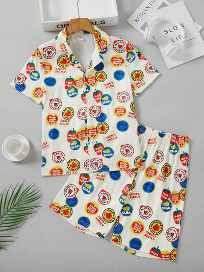 Teen Boy Simple Printed Shorts And Short Sleeve Loose Casual Home Clothes