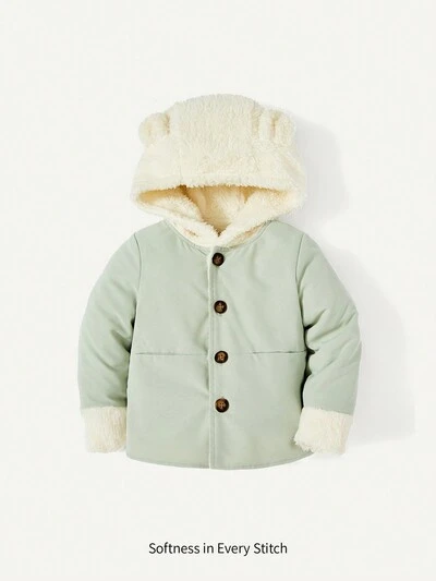 Baby Boy 3D Ear Design Button Up Hooded Thermal Lined Padded Coat-60%