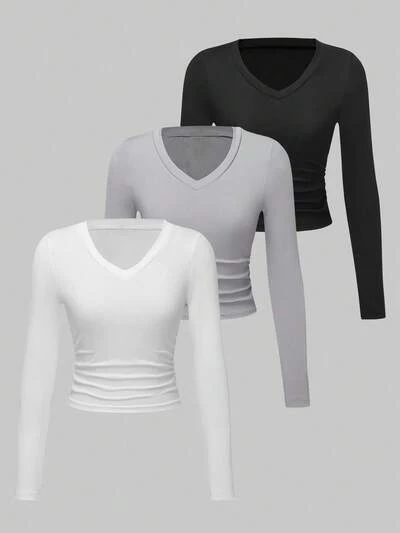 3pcs Solid V Neck Tee Fall Cloth For Women-23%