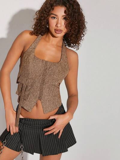 Stitch Detail Tie Front Top Going Out Top Vacation Spring Summer Festival Holiday-32%