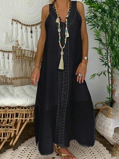 Women's Casual Vacation Sleeveless Dress With Floral Lace Patchwork And Side Slit Hemline-33%