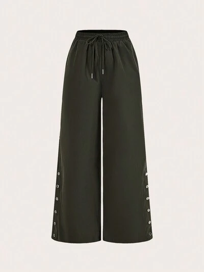 Women's Summer Solid Color Buttoned Half Placket Round Neck Batwing Short Sleeve Casual T-Shirt-32%